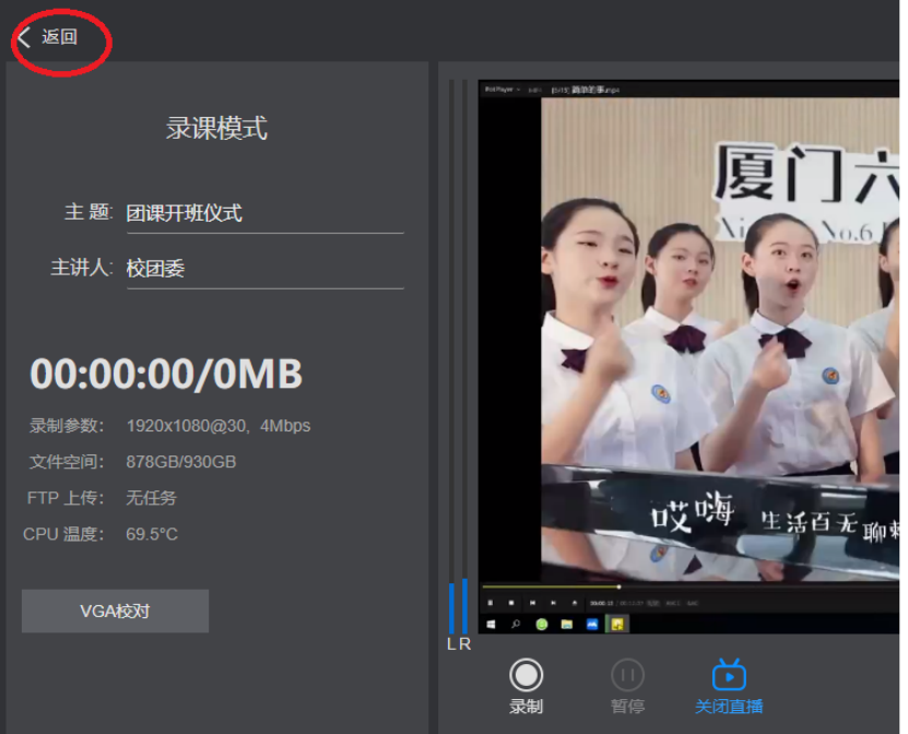 3.输入主题和主讲人,然后点击“录制”,若要直播,请点击“开启直播”