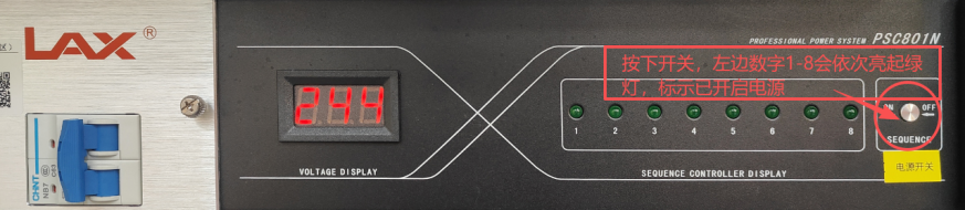 打开机柜里的电源时序器开关,即可打开设备以及大显示屏的电源。