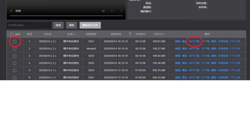 勾选要下载的录像前的框,然后点击后面的 “MP4下载”,保存到你要保存的位置