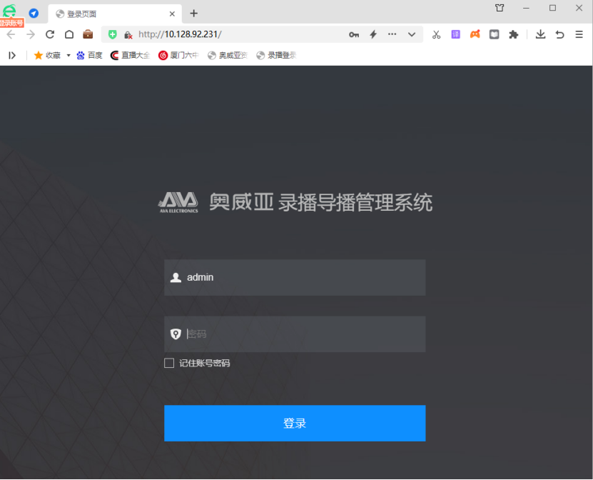 (3)录播室1的网址:http://10.128.87.241/,输入用户名:admin,密码:Xmlz@5678