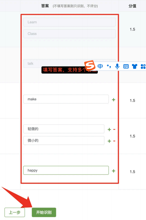左边绿色的是正确+错误答案,正确答案默认给满分,错误题目默认给0分