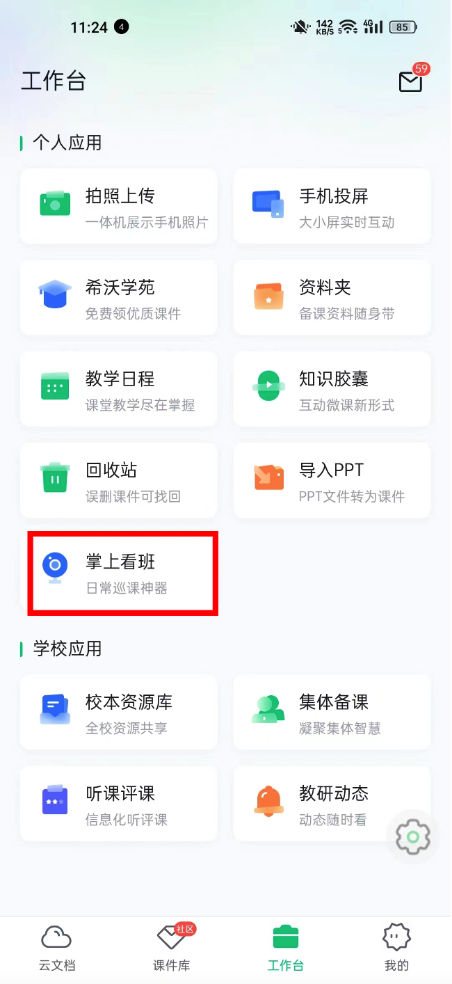 路径1:希沃白板APP-工作台-掌上看班
