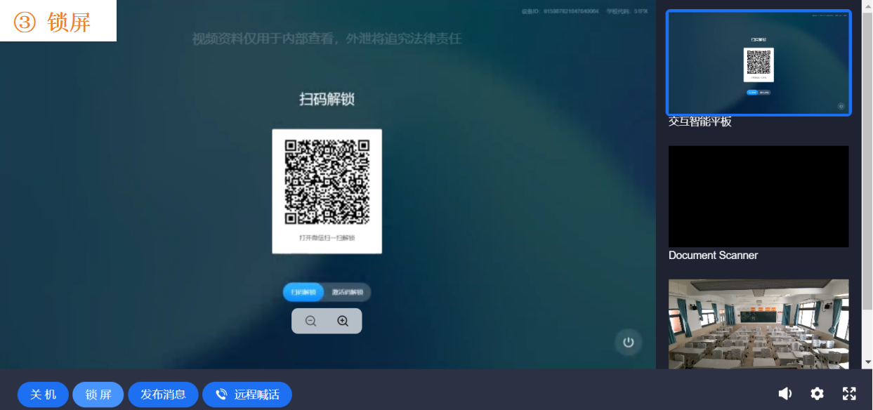 功能③ 锁屏:可强制锁定一体机屏幕,解锁用【希沃白板】APP扫码即可